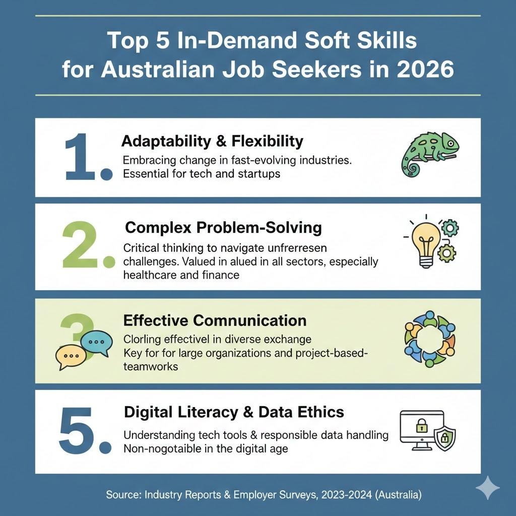 - Soft skills are critical: Beyond technical qualifications, Australian employers in 2026 highly value interpersonal and cognitive soft skills.
